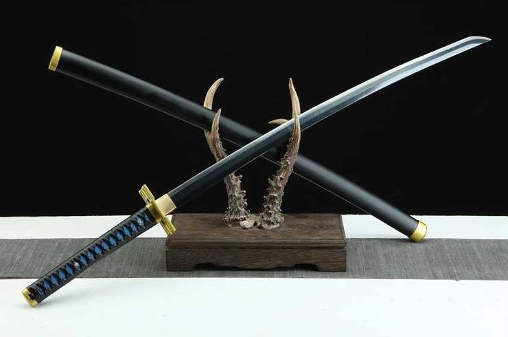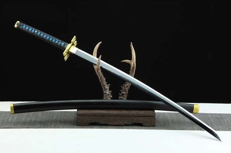 Muichiro Tokiton miekan replikassa on 1045-teräksinen täysiteräksinen terä, joka takaa optimaalisen lujuuden ja kestävyyden. Saya on valmistettu mustaksi lakatusta puusta, ja sen kärki on kullattu. PU-sininen samegawa-tsuka yhdistettynä mustaan punottuun nahkaiseen tsuka-itoon ja kullattuun fuchiin luo silmiinpistävän kontrastin. Neliönmuotoinen ja kullattu tsuba-suojus on koristeltu neljällä pienellä ontolla neliöllä kulmissa, jotka on kauniisti valmistettu kullatusta messingistä. Messinkinen habaki viimeistelee kokonaisuuden ja varmistaa sujuvan siirtymän terän ja kahvan välillä.