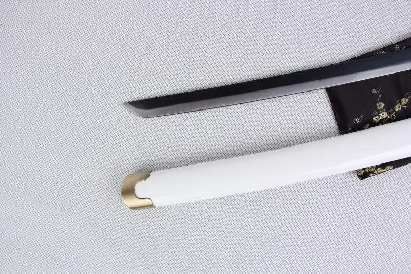Wadō Ichimonji -miekassamme on 1045-hiiliteräksinen terä, hopeoitu ja musta, kiillotettu täydelliseksi ja kiiltäväksi. Sen pyöreä kultaseoskaulus on elegantti. Kahva on kääritty PU-mustalla samegawalla. Kahvan yläpuolella oleva kudottu Tsuka-ITO on musta ja siinä on timanttikuvio. Huolellisesti lakattu valkoinen puinen tuppi kontrastoi tyylikkäästi hopeisen terän kanssa. Tarkat kallistuskulmat on otettu huomioon, mikä takaa muodon aitouden. Näiden elementtien symbioosi luo katana-miekan, joka on uskollinen alkuperäiselle sekä kooltaan että moitteettomalla viimeistelyllä.