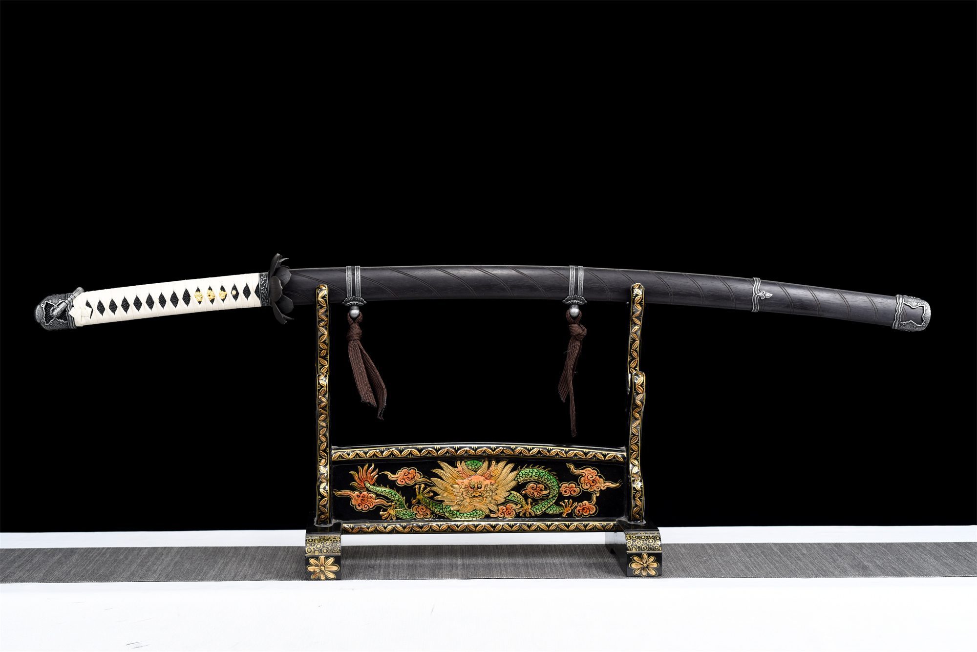 - Menuki (目貫): Kullattu lohikäärme.