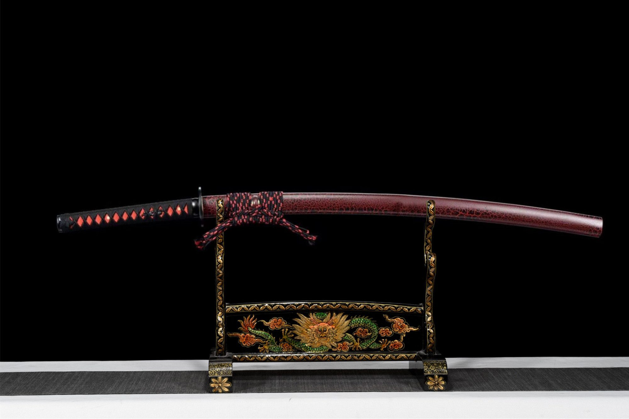 - Menuki (目貫): Musta lohikäärme.