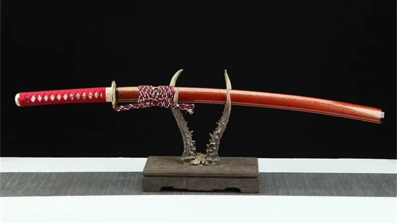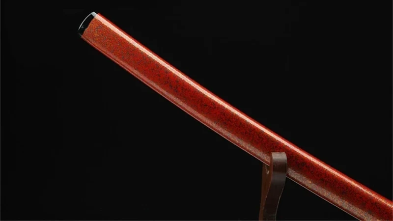 - Saya (鞘): punainen rakeinen lakattu tuppi, jossa musta Kojiri ja Koiguchi.