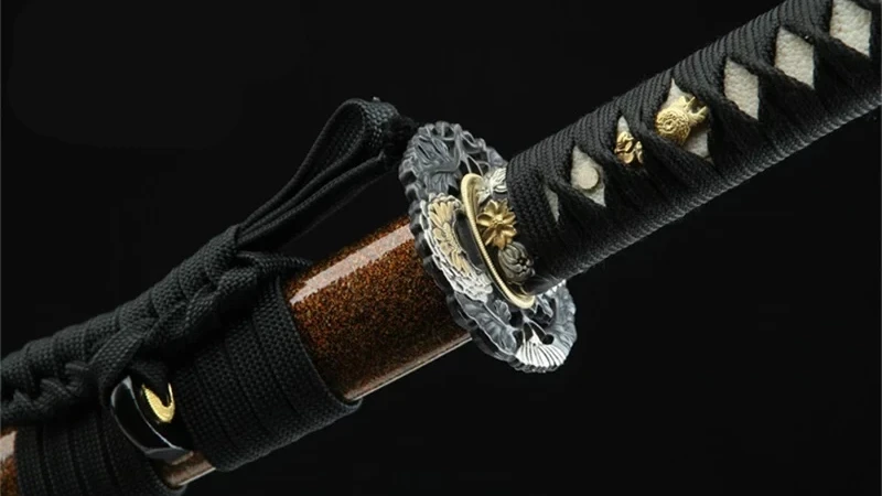 - Tsuka-ITO (柄糸): musta punos kahvan yläpuolella, timanttikuvio.