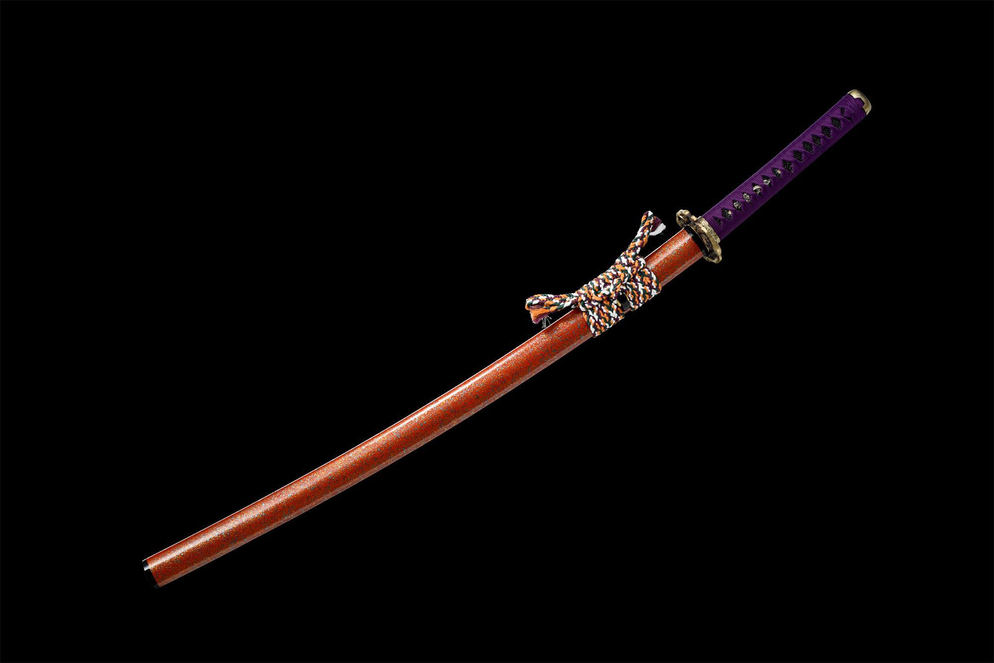 - Tsuka-ITO (柄糸): Violetti punos kahvan yläpuolella.