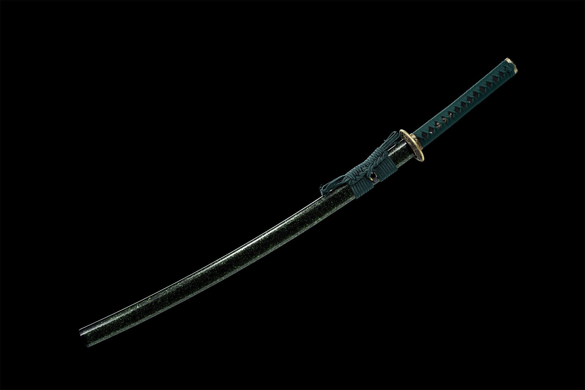 - Tuppi (Saya 鞘): Musta ja vihreä, rakeinen lakattu puu, aito sarvi Koiguchi.