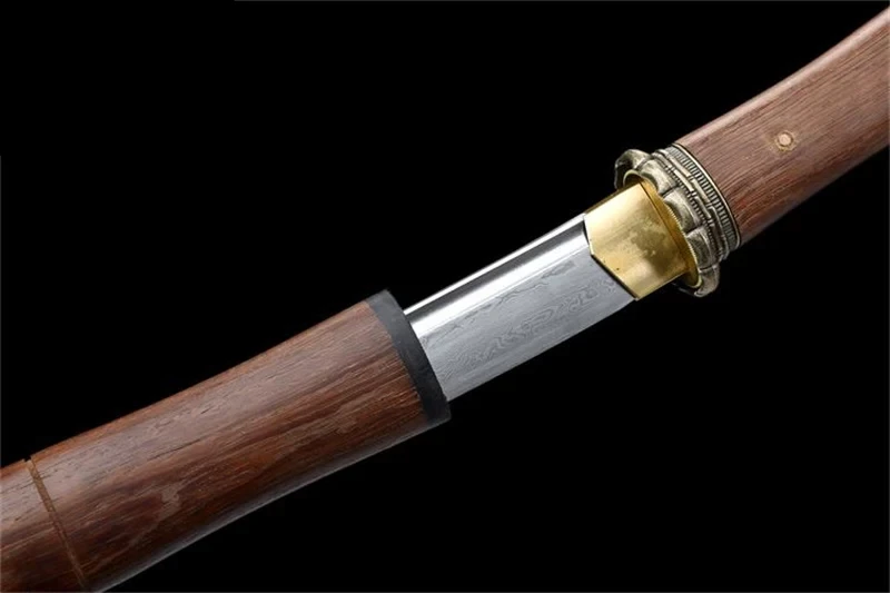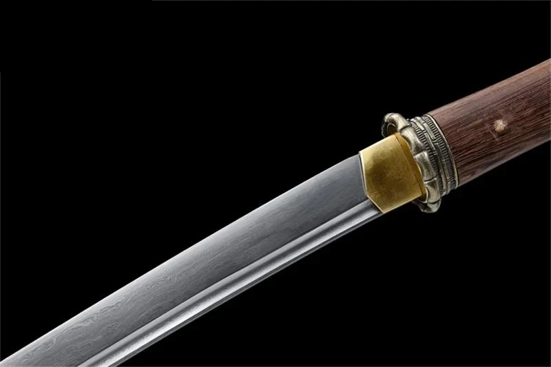 Tämä Kodachi, joka elegantisti tuo mieleen Heian-kauden olemuksen, erottuu muista sen ainutlaatuisilla ominaisuuksilla, jotka muistuttavat sen merkittävistä roolista japanilaisten miekkojen historiassa Wakizashin esi-isänä. Sen hienosti teroitettu Damaskus-teräs terä ulottuu majesteettisesti yli 52 cm:n pituudelle.