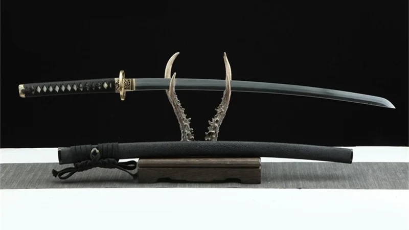 Kurotsuki- eli “Musta kuu” katana-miekka on taottu Damaskus-teräksestä, ja sen terässä on kolme erottuvaa sävyä terän keskellä ja terän kärjessä, mikä luo kiehtovan värimaailman. Katana korostaa kontrastia mustan ja kullatun messingin välillä sen suojuksessa, Habakissa ja Kashirassa.