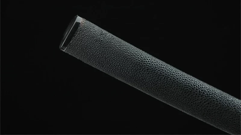 - Saya (鞘): puinen tuppi, joka on päällystetty mustalla synteettisellä shagreen-nahalla, joka jäljittelee rauskujen nahkaa.