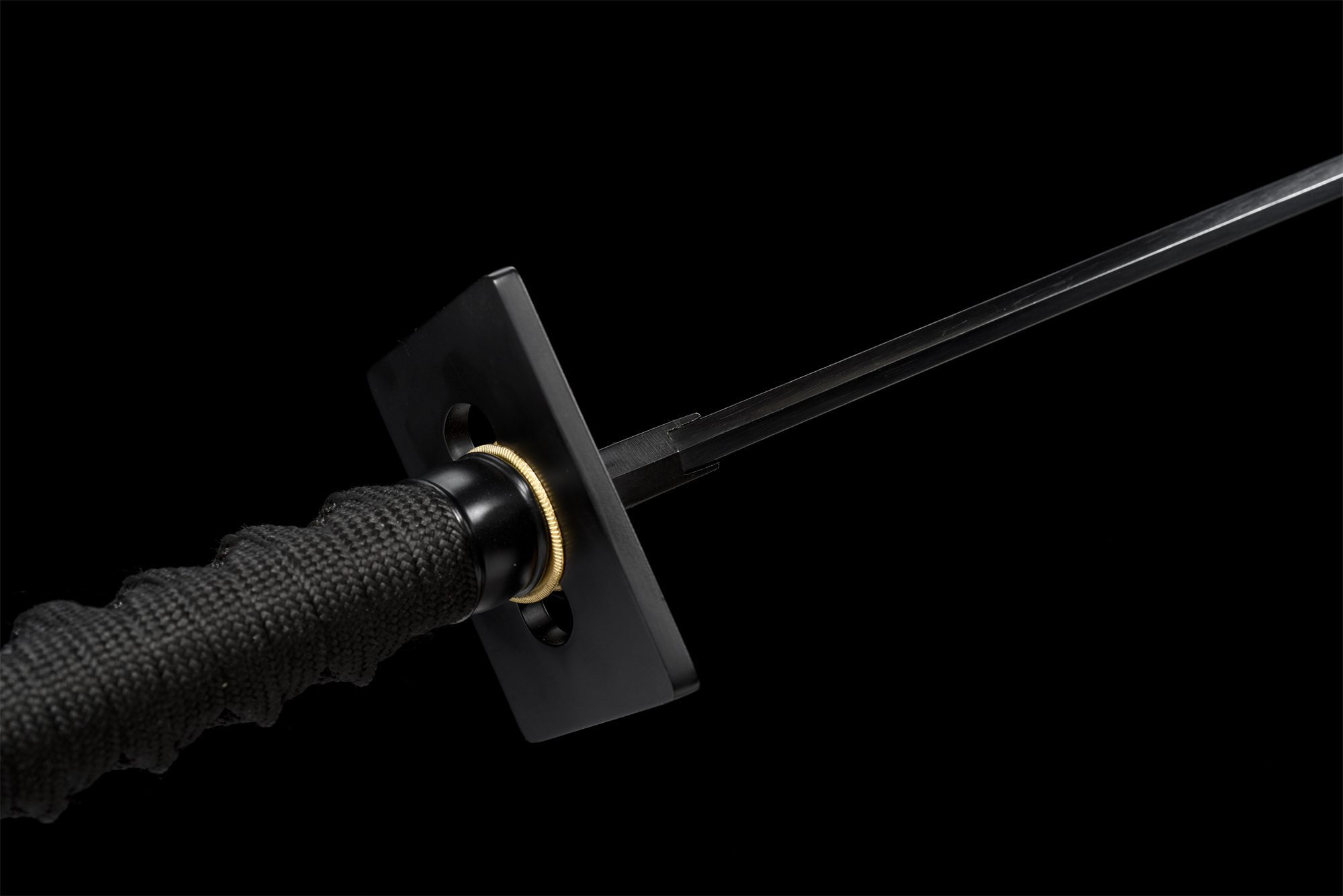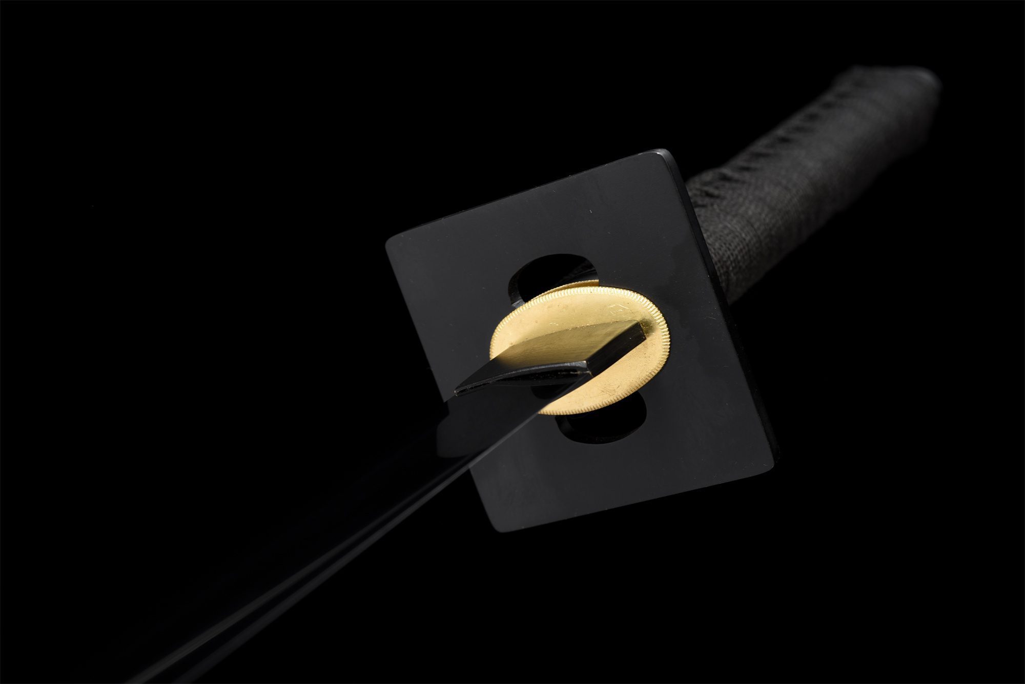 Musta terä katana-miekka on saanut nimensä sen silmiinpistävimmästä ominaisuudesta: syvänmustasta terästä, joka muistuttaa yötä ja mysteeriä. Tämä tumma sävy, joka on saavutettu erityisellä teräksen käsittelyllä, symboloi perinteisesti soturin harkintaa ja hiljaista voimaa. Japanilaisessa kulttuurissa musta edustaa myös hillittyä eleganssia ja horjumatonta päättäväisyyttä, mikä tekee tästä aseesta hallitun voiman symbolin.