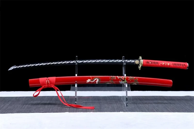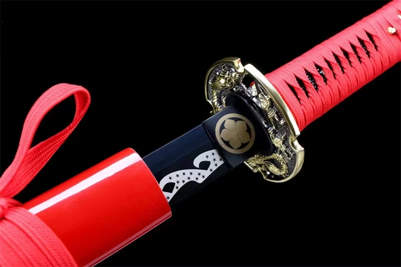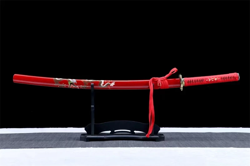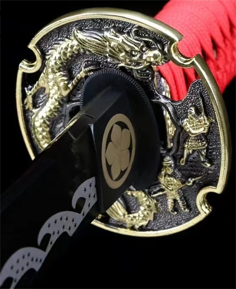 Punainen Lohikäärme Katana, jossa on kultainen lohikäärme kietoutuneena sen suojukseen sekä lohikäärme juoksemassa sen tuppeen. Habakissa on näkyvissä kultainen kukka ympyrässä, kun taas sen keskiyönsinisessä terässä on valkoinen hamon aaltojen muodossa ja pienillä tähdillä. Sen punainen puuvillainen Tsuka Ito peittää Pu Black Samegawa -kahvan, jossa on kullattu lohikäärmeen muotoinen menuki. Sageo on myös punainen.