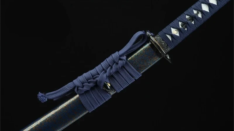 - Tsuka-ITO (柄糸): sininen, punottu timanttikuvioisesti kahvan yläpuolelle.
