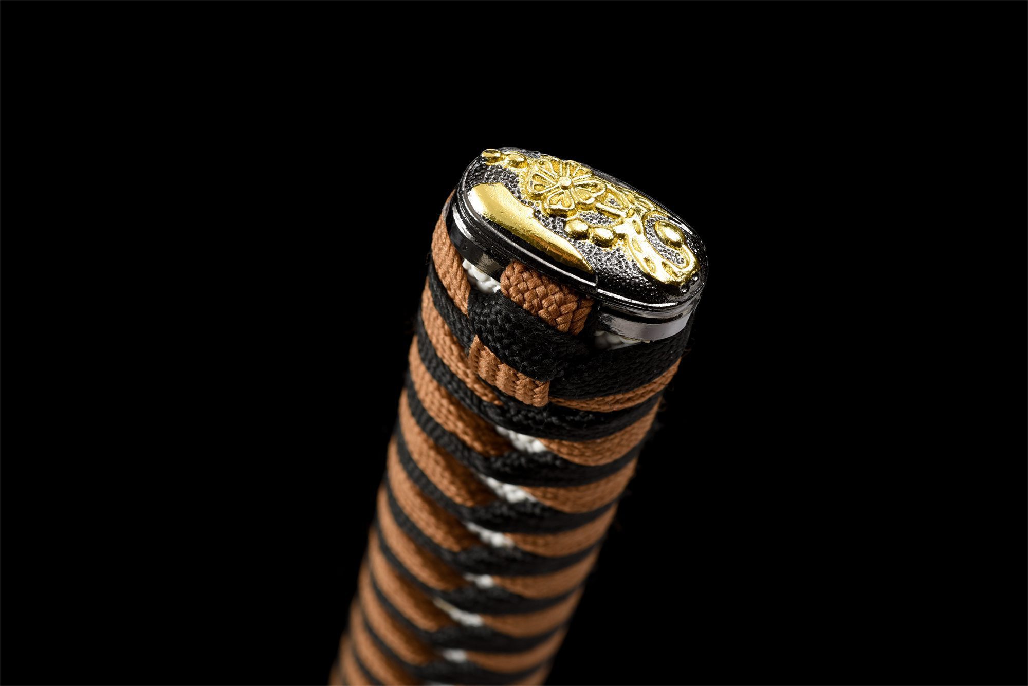 - Tsuka-ITO (柄糸): Ruskea ja musta punos kahvan yläpuolella, timanttikuvio.