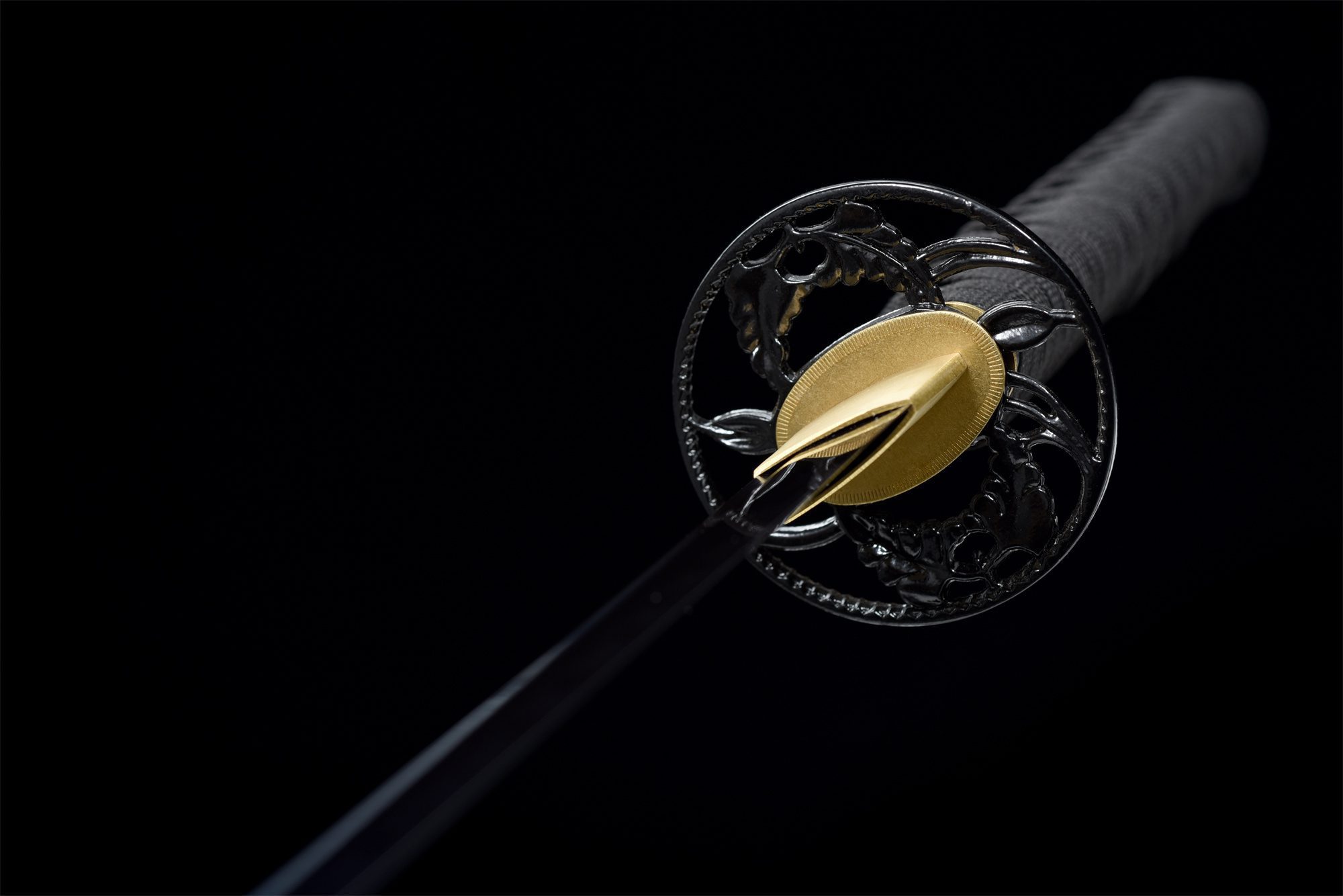- Menuki (目貫): Hienosti veistetyt mustat lohikäärmeet.