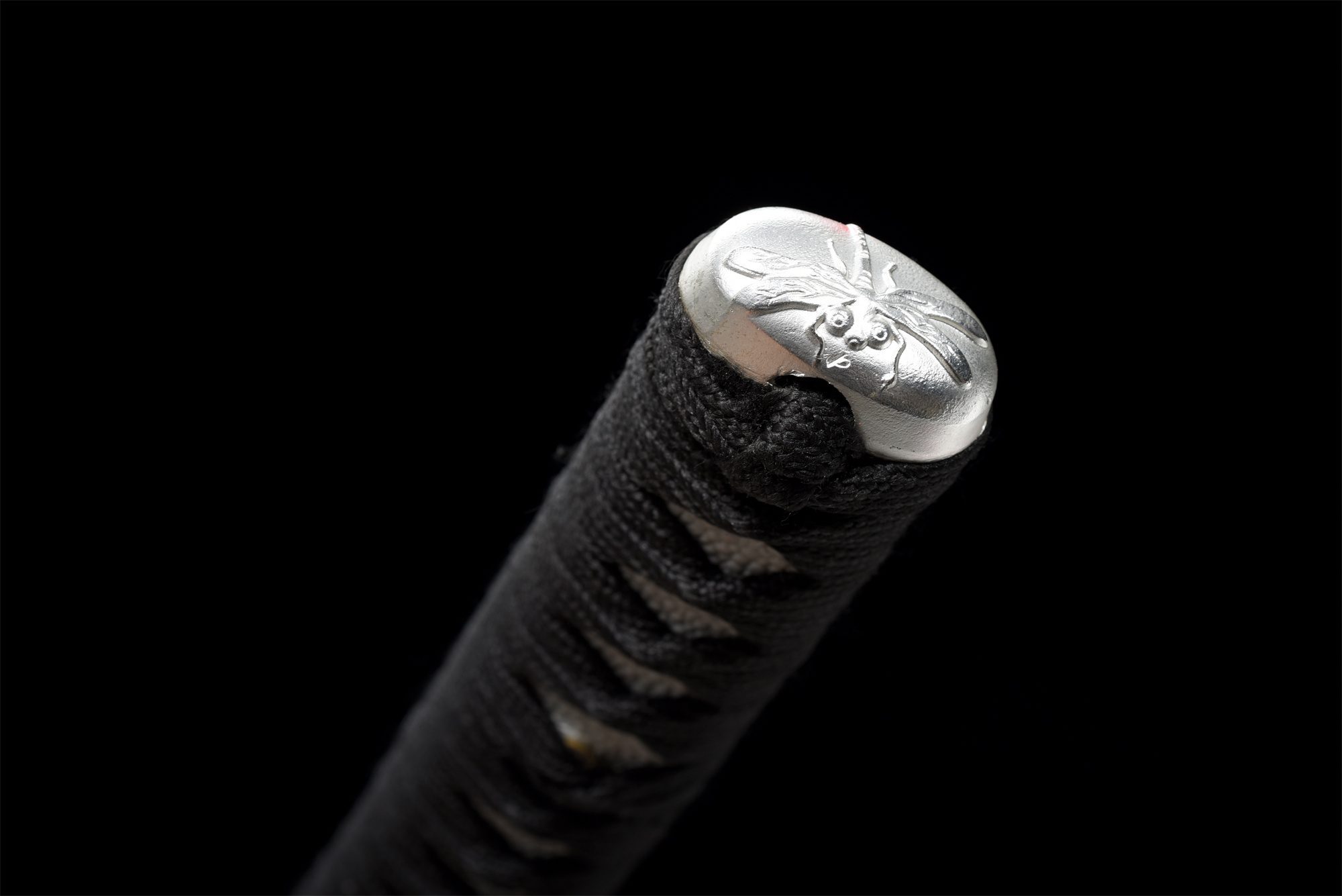 - Tsuka-ITO (柄糸): Musta punottu timanttikuvio kahvan yläpuolella.