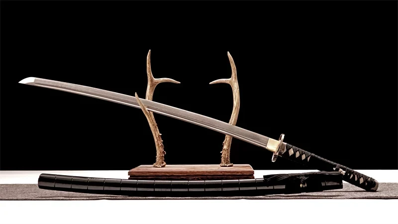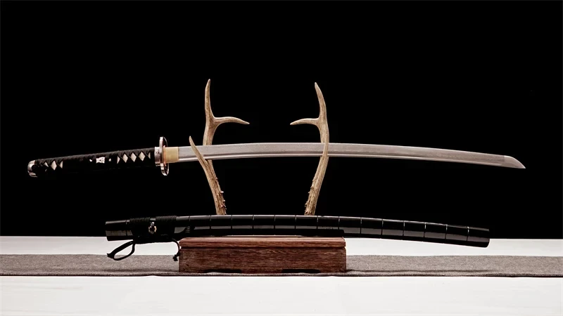 - Tsuba (鍔): lähes neliönmuotoinen, hieman ristinmuotoinen, kiinteä, musta ja hopea.