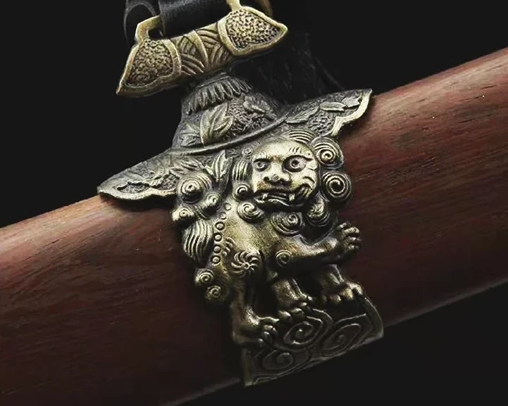 - Menuki (目貫): pitkä kullattu lohikäärme.