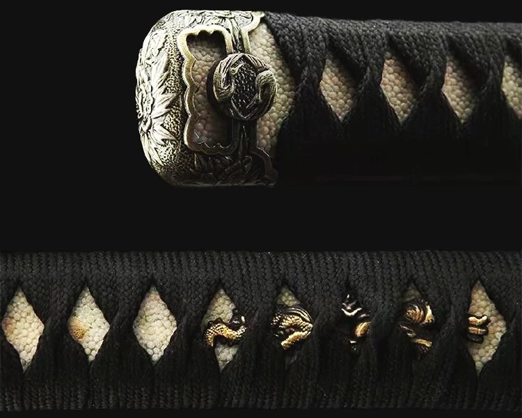 - Tsuka-ITO (柄糸): musta punos kahvan yläpuolella timanttikuvioisena.