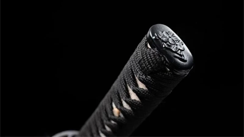 - Kashira (頭): musta metalliseos, jossa kaksi kaiverrettua kukkaa.
