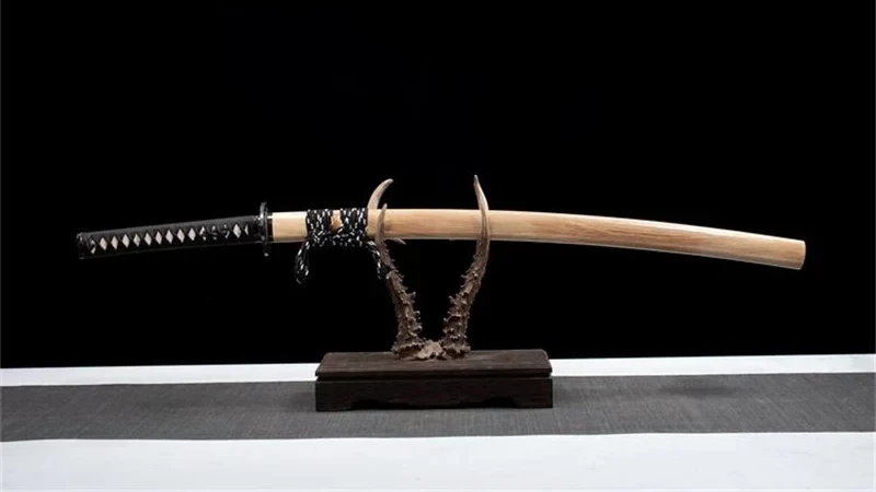 Tetsuya katana-miekka (鉄矢), joka tarkoittaa “rautanuolta“, on tunnettu hillitystä muotoilustaan, jossa yhdistyvät puun raaka väri tuppeen ja modernit geometriset muodot. Sen T10-teräksinen terä on poikkeuksellisen kestävä ja siinä on aito Gunome hamon (刃文), joka on saatu kastamalla terä kylmään veteen ja peittämällä se osittain savella ja hiilellä. Valkoinen rauskunahka Tsuka yhdistettynä mustalla Tsuka-Ito-kudoksella, joka on kudottu timanttikuvioiseksi, takaa tukevan ja tyylikkään otteen. Musta lohikäärme-menuki, musta Fuchi ja Kashira, joihin on kaiverrettu kukkia, sekä sileä messinkinen Habaki täydentävät tämän katanan.
