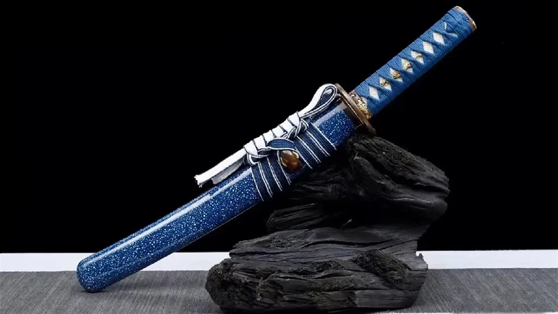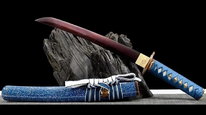 - Saya (鞘): sininen tuppi, jossa valkoisia pisteitä. Koiguchi on valmistettu punaisesta puhvelinsarvesta.
