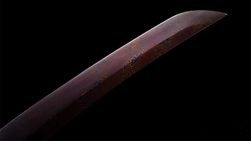 - Terä: kierretty punainen Damaskus-teräs, teroitettu tai teroittamaton.
