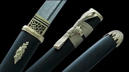 - Saya (鞘): musta eebenpuinen tuppi, jossa kullattu messinkikoriste Kojirissa (tupen päässä) ja Koiguchissa (sageo/suojuspuolella).