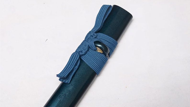 - Tsuka-ITO (柄糸): sininen, timantinmuotoinen kääre kahvan yläpuolella.